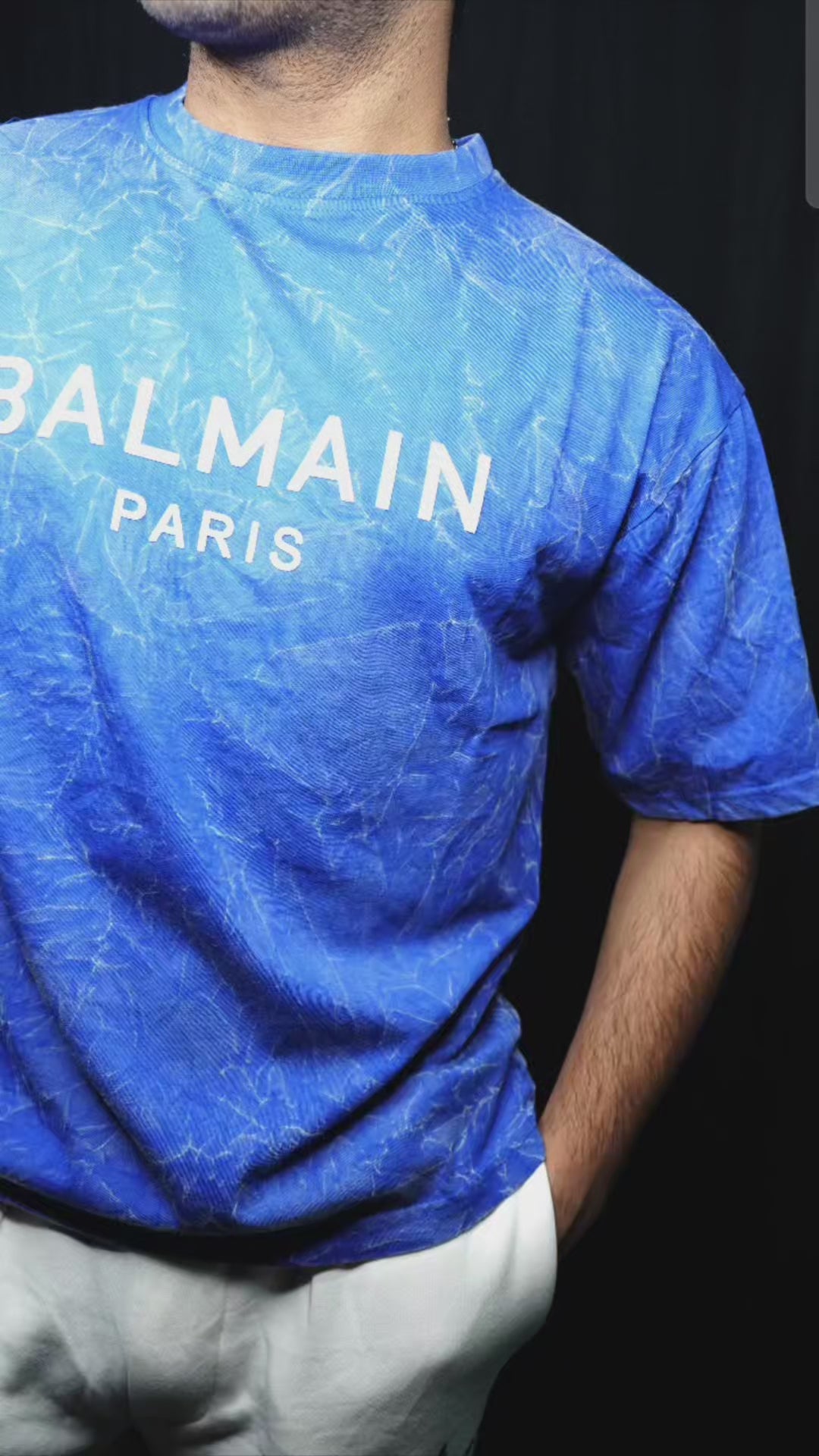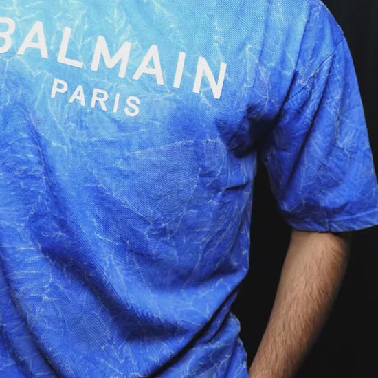 Elevate your streetwear game with this Balmain Paris Royal Blue T-Shirt. Crafted from premium cotton, this tee delivers both comfort and bold style. The striking royal blue wash effect gives it a modern, textured appeal, while the iconic Balmain Paris logo printed across the chest adds a statement of luxury.