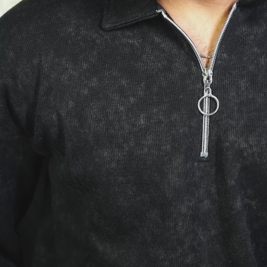 Stay effortlessly stylish and comfortable with this sleek black half-zip sweatshirt. Featuring a high neck design with a modern ring pull zipper, it’s perfect for layering or wearing on its own. Crafted from soft, breathable fabric, this sweatshirt offers a relaxed fit with long sleeves, making it ideal for casual outings, travel, or everyday wear. The minimal design with a subtle label detail adds a trendy touch while keeping it versatile enough to pair with jeans, joggers, or chinos.