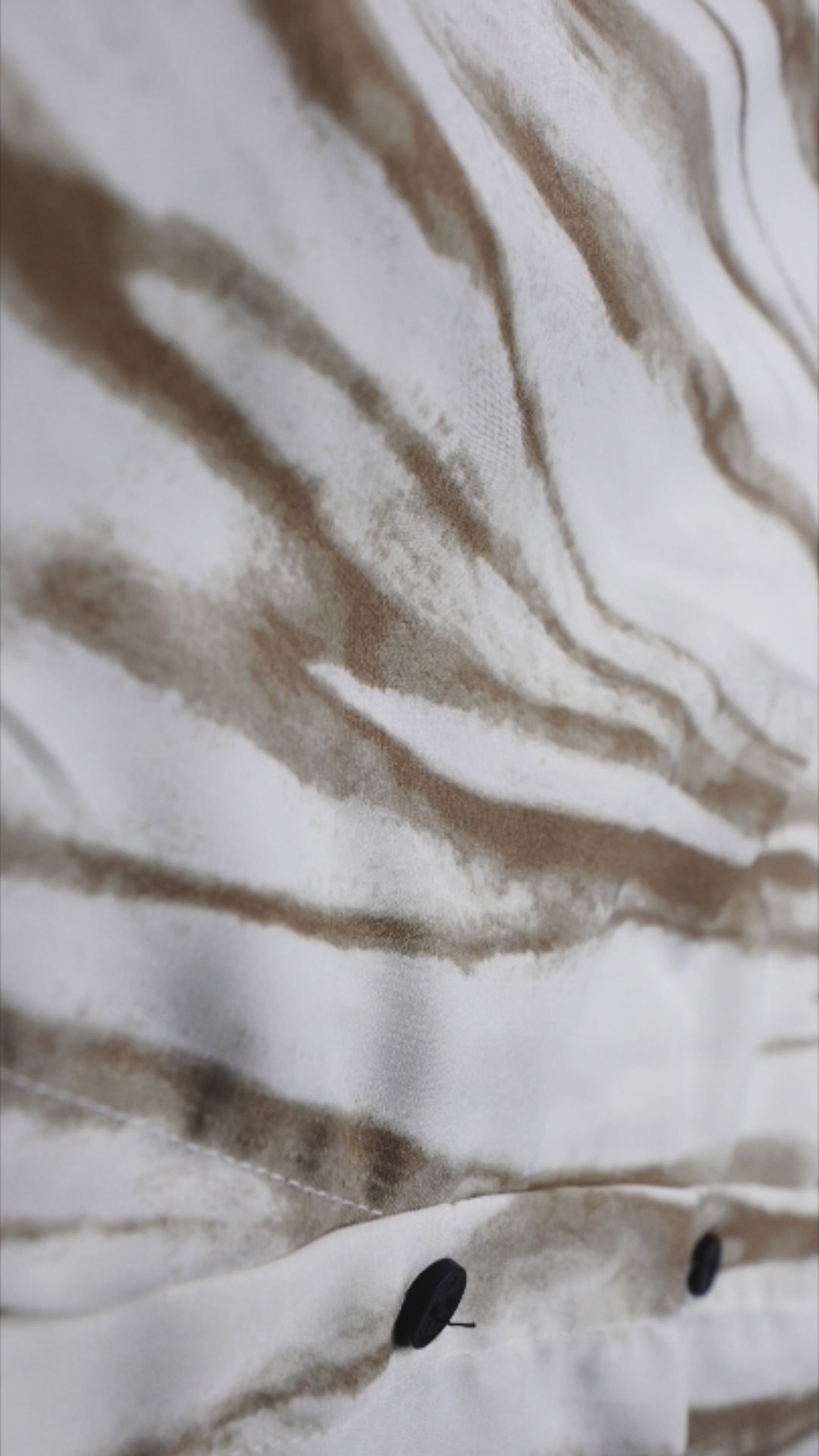 Upgrade your wardrobe with this stylish men’s long sleeve button-up shirt featuring a unique beige and white striped design. Crafted from soft, breathable fabric, this shirt combines comfort with modern fashion. It comes with a classic collar, black buttons, and adjustable cuffs, making it perfect for both casual outings and semi-formal occasions. Pair it with jeans, chinos, or trousers for a versatile and trendy look.